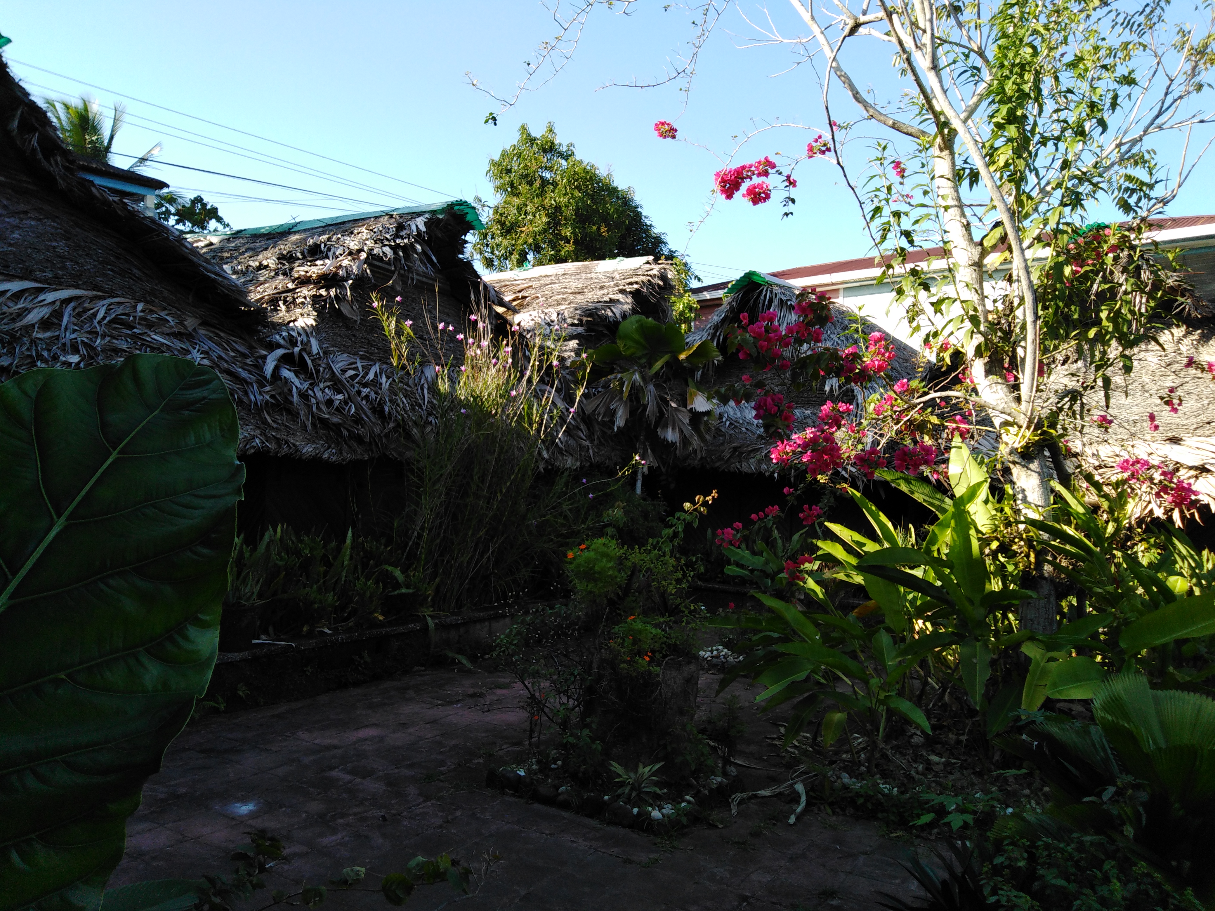 Nos hospedamos en el hotel casa rosada que queda a 5 minutos del muelle principal yendo a pie. El albergue tiene diferentes habitaciones y cuenta con pequeñas cabañas que es donde nos quedamos; las cuales cuentan con tela mosquitera para cubrir la cama por la noche, ya que abundan los mosquitos, aunque sorpresivamente no es tan necesaria como se espera. El ambiente es bastante agradable y el clima invita a la relajación. Lagartijas y lagartos de todos los tamaños son frecuentes y aparecen desprevenidamente a lo largo del complejo; aunque siempre, vale la reseña, a una distancia considerable del observador. El hotel cuenta además con un muelle propio donde es posible tirarse al río o sumirse en la contemplación recostado sobre una hamaca.