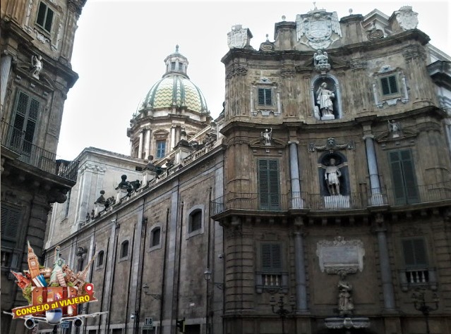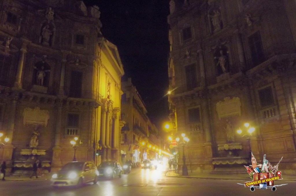 A pocas cuadras se encuentra otro sitio identitario de esta ciudad: Quatro Canti (cuatro esquinas) que son esculturas repartidas entre las fachadas de edificios que se levantan en la intersección de calles que contiene cada una diversos detalles, los cuales a su vez, representan distintos aspectos de importancia histórica para la ciudad: los niveles inferiores representan las estaciones, los niveles medios a los cuatro virreyes españoles de Sicilia y los 4 niveles superiores a las cuatro patronas de los cuatro barrios de la vieja ciudad. Este sitio destacado de la ciudad tendré la oportunidad de visitar tanto de día como de noche, pudiendo apreciar el contraste que genera la diferencia de iluminación.