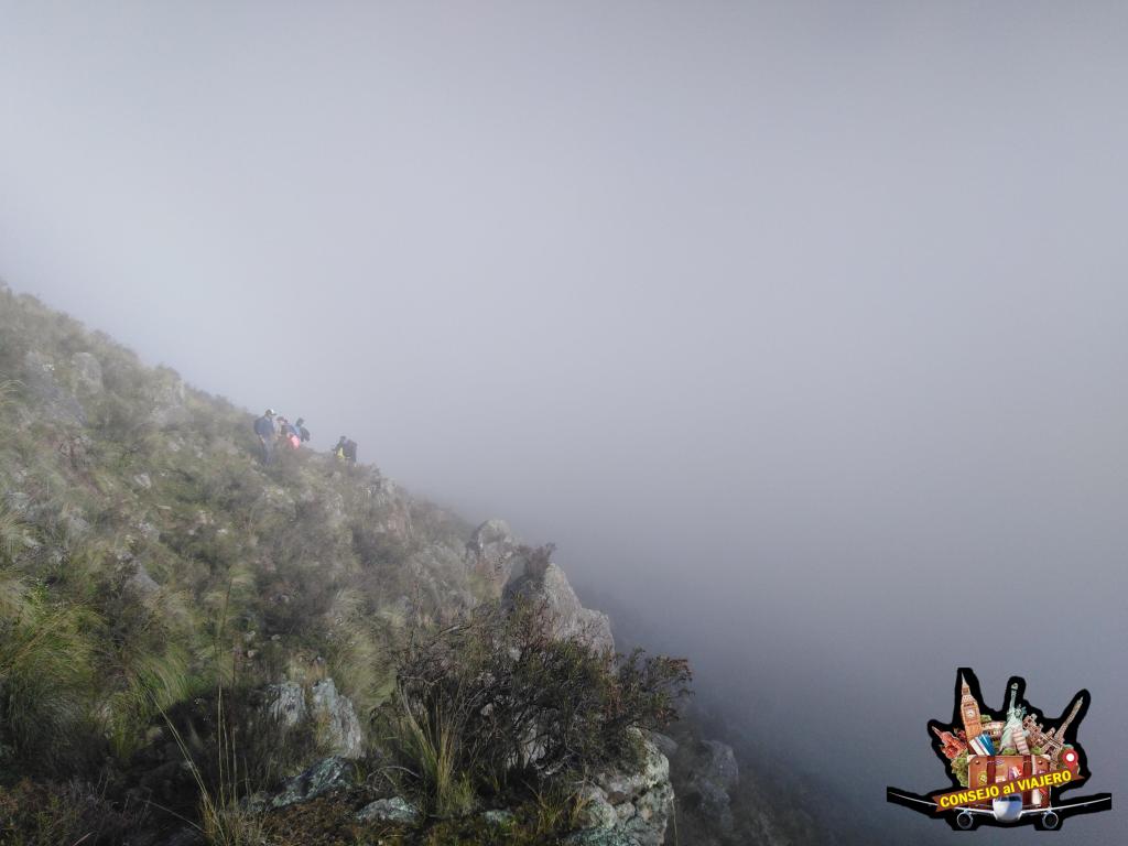 Antes de partir, dejamos una muda de ropa en el sitio de regreso, teniendo en cuenta los cambios de clima que puede darse durante el día de excursión. Siendo alrededor de las 7.30 am la expectativa da paso al acto, donde cada participante va acomodándose para encarar la primera parte de la subida que implica un caminata en zigzagueo por la ladera abrupta que se presenta frente a la villa turística de partida. La subida está acompañada de muchas rocas y poca vegetación. Llegado a este punto, es posible divisar a los menos partes de las dos quebradas que circundan esta montaña que son la quebrada del portugués y la de Los Sosa. También, y otra vez, con la ayuda de nuestros guías, vamos reconociendo al frente nuestro, a lo lejos, cual cordón montañoso corresponde al Mala Mala, alto del Matadero, abra del infiernillo y la Ciénaga.