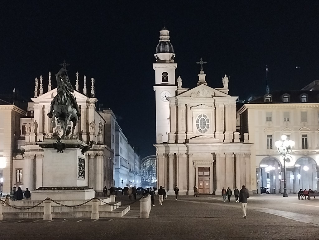 Cuando las luces del alumbrado público se adueñan del centro es que llegamos a la estación de trenes de Turín, último eslabón de este periplo de 10 días por el norte italiano. El hospedaje se encuentra a 40 minutos a pie así que decidimos ir a nuestro paso de manera de echar un primer vistazo nocturno a la ciudad. Una constante de esta época es la poca cantidad de personas en las calles por el frío y eso me agrada. El departamento alquilado queda en el corso Regina Margherita (quien fue la primera reina de Italia tras la unificación) cerca de la Porta Palatina y el Palacio Real de Turín.