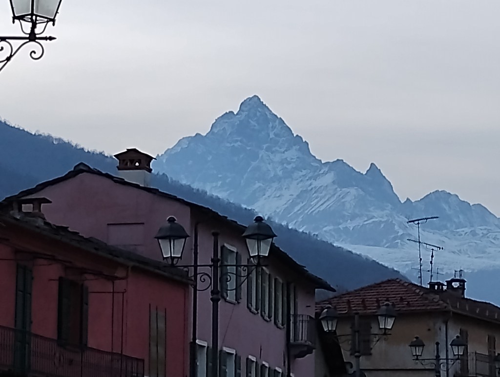 De todas maneras y con la carga emotiva que implica compartir un día con parientes (aunque lejanos), se trata de un gran día y posiblemente uno de los mejores de este recorrido tano. Además de que Gianluca nos prepara una rica pasta, su madre Rosalba nos entretiene comentando el devenir evolutivo de nuestro apellido: Margaria. La misma Rosalba nos acompaña a caminar por el pueblo donde nos muestra la casa donde vivieron nuestros antepasados y una de las iglesias donde nos expresa que las imágenes de la cúpula fueron restauradas por mi tatara abuelo que fue artista. El pueblo se encuentra cerca de la naciente del Rió Po y es la antesala de los Alpes con el pico de Monte Monviso a la vista durante todo el tiempo.