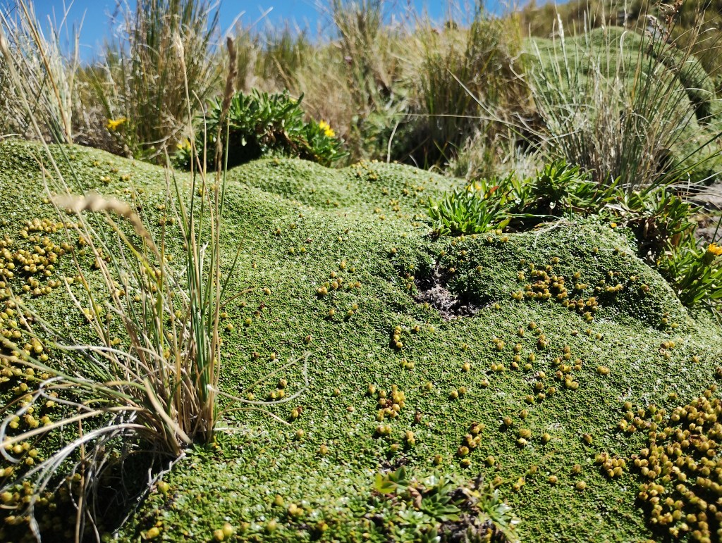 A mitad de camino se puede empezar a ver la Yareta, que es una planta que crece a más de 3000 metros de altura y de lento desarrollo, por lo que hay que ser muy cuidadosos a la hora de realizar este tipo de actividades a fin de no alterar aún más este tipo de ecosistemas. Además, se trata de un ejemplar que sobresale en el paisaje, dominado por pajonales, pastizales de altura y piedas de diversos tamaños.