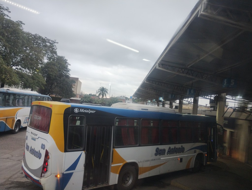 La última vez que hice un viaje de larga distancia en bus fue en el sur cuando fui a Bariloche y Esquel. No recordaba lo sucia que se puede encontrar la butaca cuando te sumas a una flota que ya viene con largas horas de viaje. Salimos nuevamente a la ruta a las 12.40 aproximadamente, eso quiere decir que, teniendo en cuenta la hora de llegada estimada en un principio ahora estaríamos llegando con viento a favor a las 11.30.