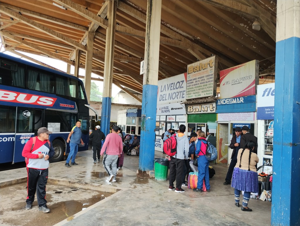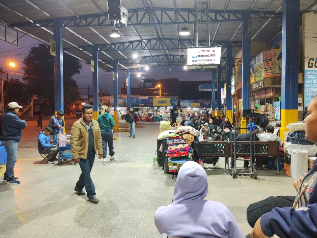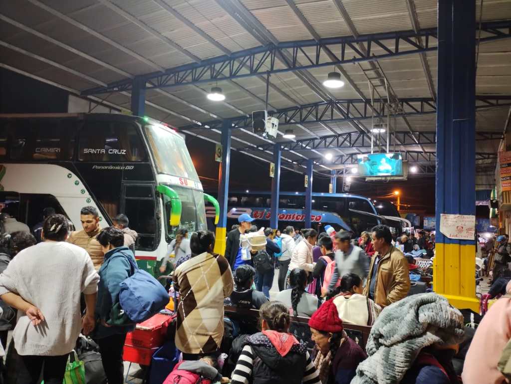 La terminal es pequeña y da la sensación de que se quedó corta para la cantidad de gente que hay, aunque no se si es un movimiento usual o por la fecha en particular. No logro distinguir entre los viajantes y los comerciantes. Eso sí, la gente por lo general viaja muy cargada.