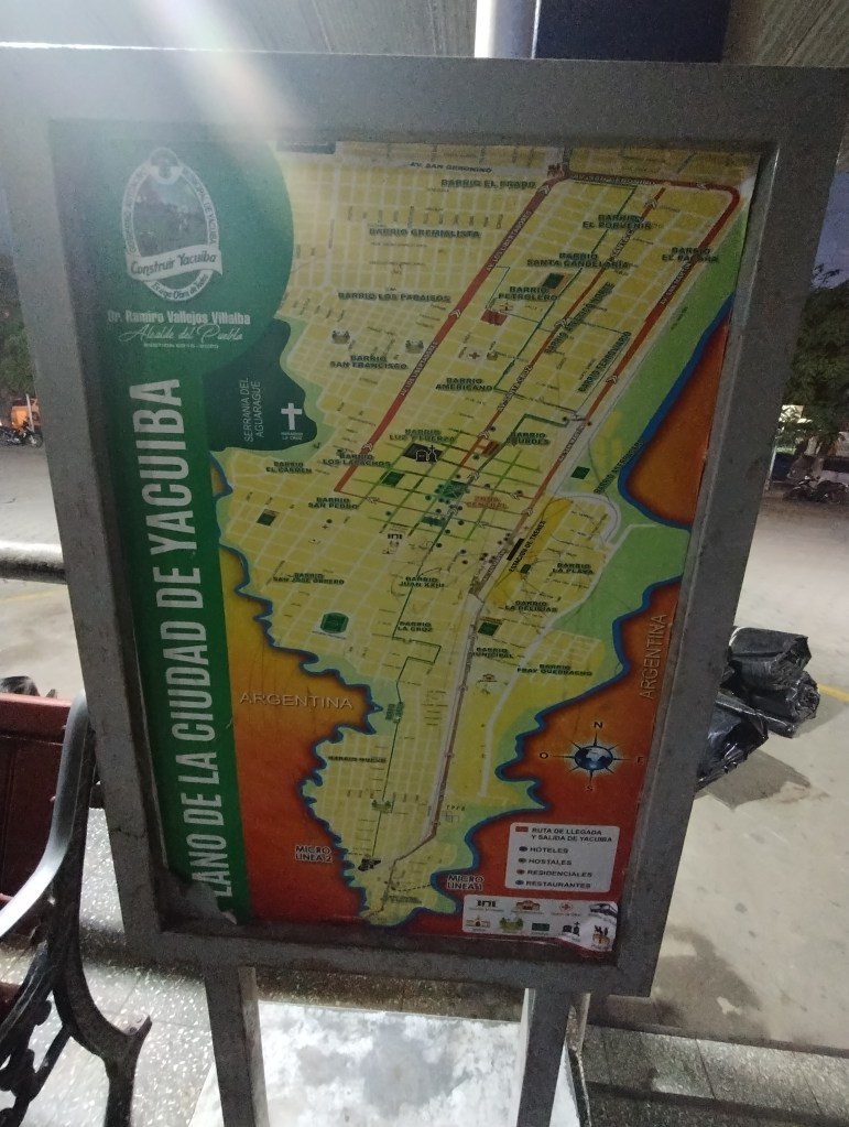Hago los trámites en migraciones de manera bastante rápida. Cruzo el puente internacional y me adentro en lo que creo que es Yacuiba, aunque al poco tiempo de andar por la zona comercial me doy con que en realidad estoy a 4 kilómetros de lo que es realmente Yacuiba. Por momento, solo estoy «del otro lado».