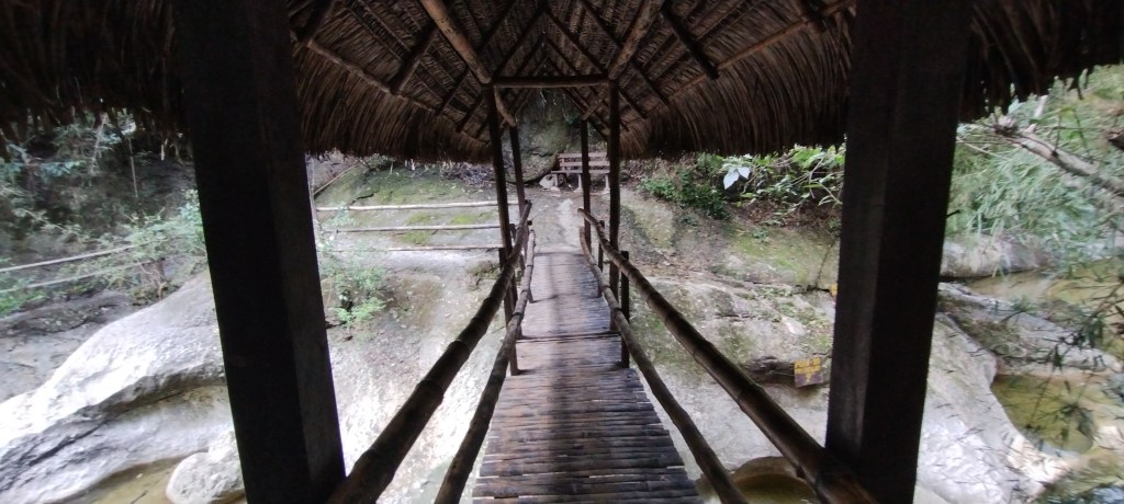 Caminando por un sendero de aprox. 200 mts en subida vas pasando una por una por 23 pozas de agua que están especial para darse un baño en los días de calor. Son como piletas naturales de distinta profundidad. Imagino el bullicio en el verano y un caudal de gente similar al que se ve en la cascada de aguas chiquitas en El Cadillal. El recorrido culmina, justamente, con una cascada.