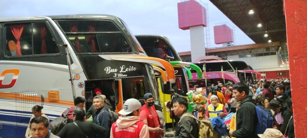 A lo largo de mi caminata hasta aquí, busque cafés. pero solo vi uno y estaba cerrado. En las cercanías a la terminal si había muchos puestos callejeros de desayuno. Mucho caldo, carnes y distintas infusiones, incluso algunos vendían api, pero nada de café. Termino en el Starbucks de la esquina de la plaza (luego descubriré al menos dos más), desayunando un café con leche (me niego a llamarlo de otra manera) acompañando con los panes que me regalaron ayer en Yacuiba.
