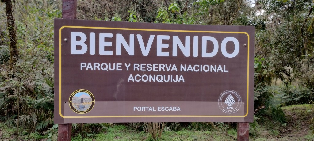 El sendero forma parte del Parque Nacional Aconquija, y al principio nos dio la bienvenida un cartel que decía «Portal Escaba». Este parque tiene varios portales, como La Banderita, Portal Campo de los Alisos, Portal Piedra Labrada y Cochuna. El camino hacia el chorro está bien señalizado y segmentado en 10 partes, lo cual es muy útil porque te sirve para estimar cuánto falta aproximadamente para llegar al chorro.