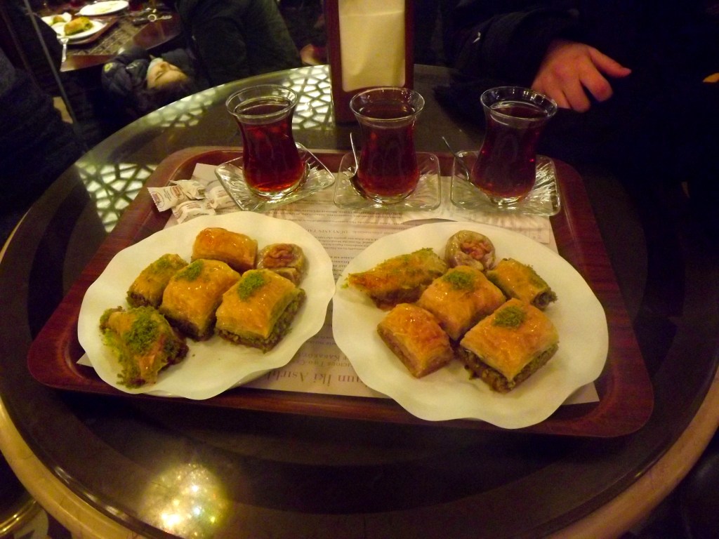 El hombre, además, nos obsequió una bandeja llena de dulces turcos. Entre ellos, los baklavas, esos pequeños manjares que nunca olvidaré. Estuvimos allí al menos un par de horas, disfrutando de la calidez del lugar, del té y de un ambiente absolutamente acogedor, muy distinto a lo que venía siendo la hostilidad e incomodidad que generaba el clima de la ciudad.