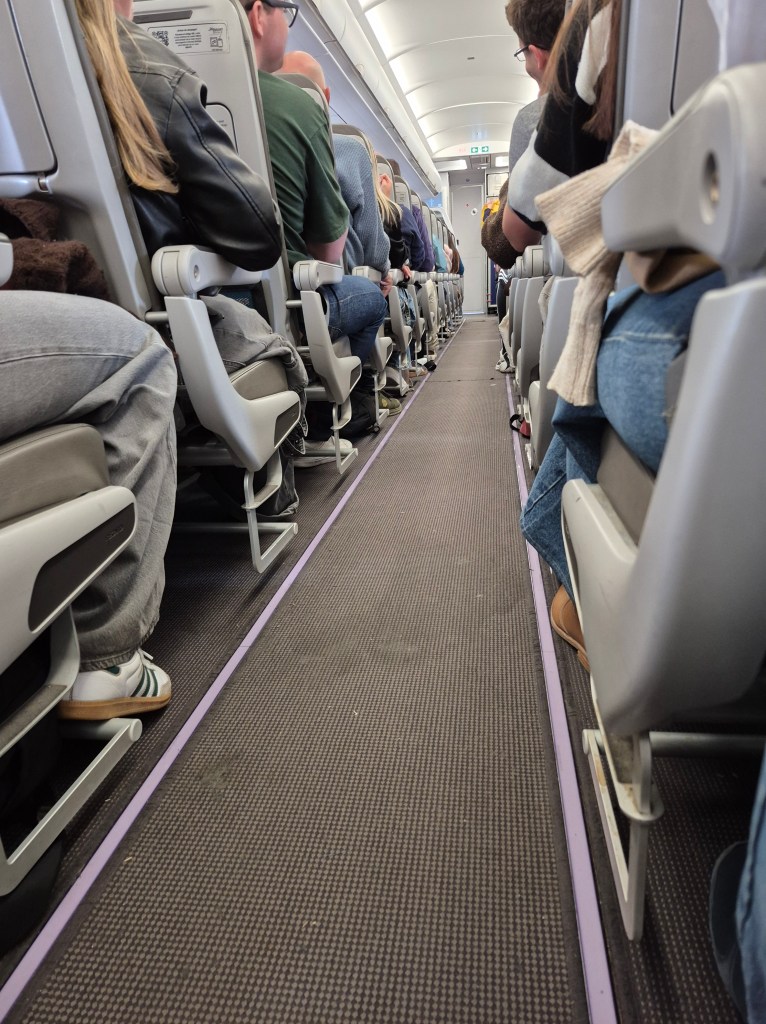 Me tocó pasillo. Hubiera preferido, claramente, ventanilla. Pero preferí no elegir asientos y que me los dé aleatoriamente.