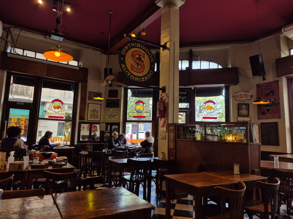 Luego de 40minutos Llegue al parque Lezama. En la esquina del parque entre al bar Hipopotamo para desayunar un Cafe con leche con medialunas.