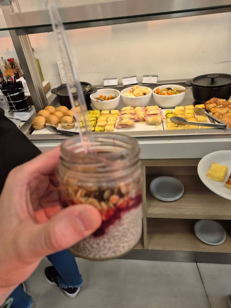 Compré unos toblerone que estaban con descuento. Intente entrar al lounge de Visa, pero estaba lleno. Hice fila espera virtual. A los 40 min aproximadamente pude entrar. Primera vez que puedo entrar a una de estas salas que siempre las conocí como “vip” aunque hace poco vi un video de Sir Chandler donde las criticaba. Admito que no recuerdo sobre qué iba la crítica.