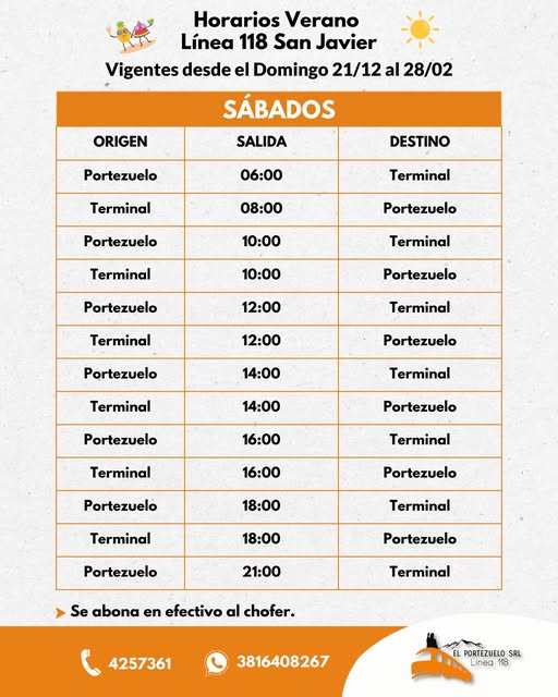 Info sacada de la página de la línea 118. Los horarios suelen variar según los meses del año.